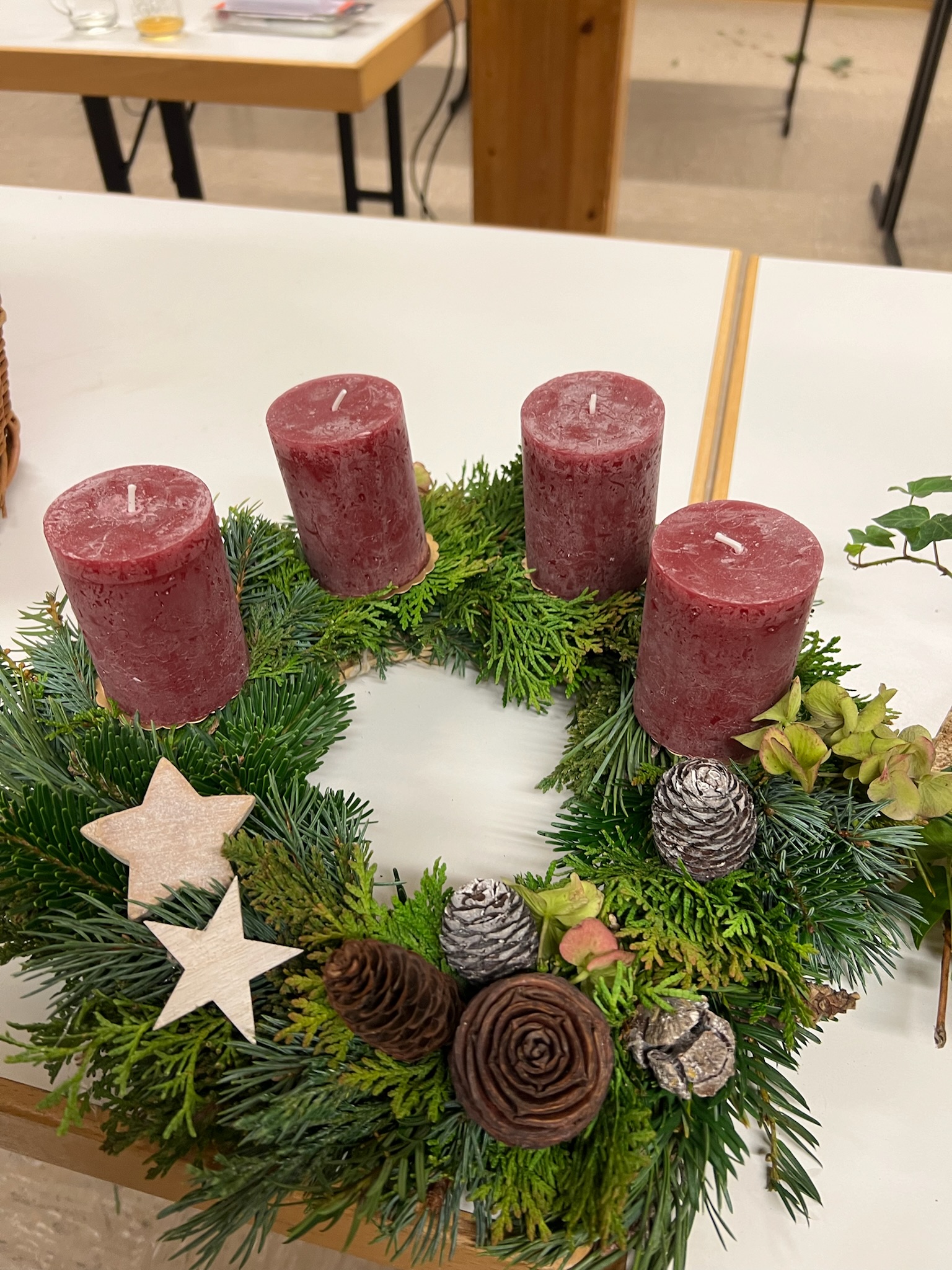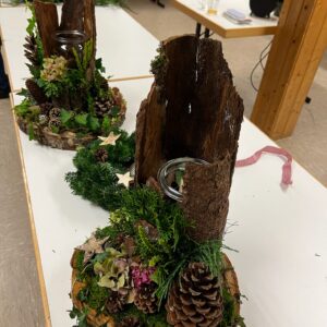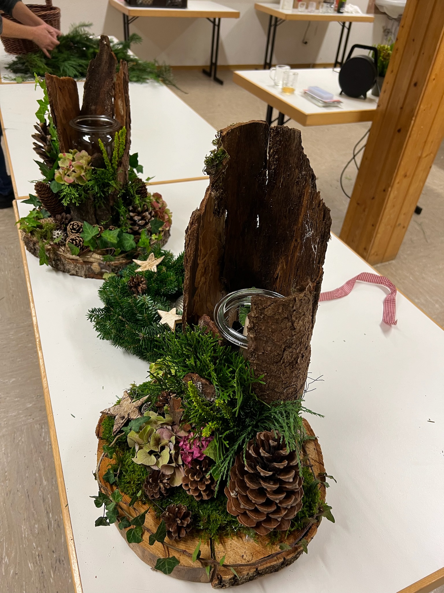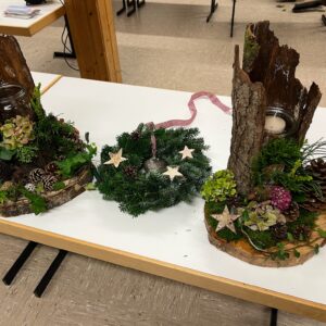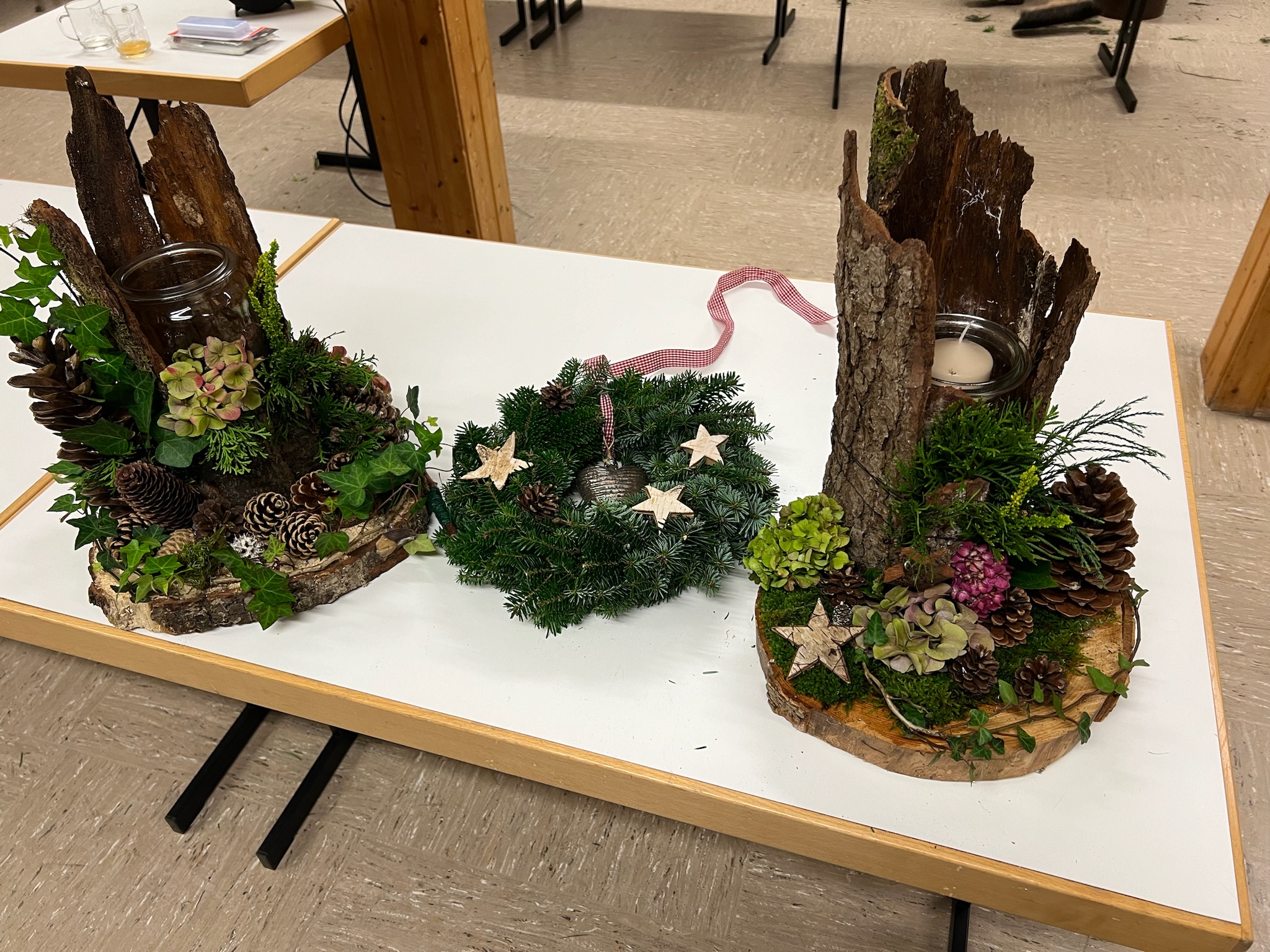 Wir haben tolle Adventskränze, Windlichter aus Rinden und Türkränze hergestellt.