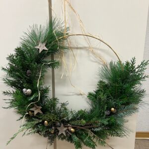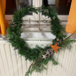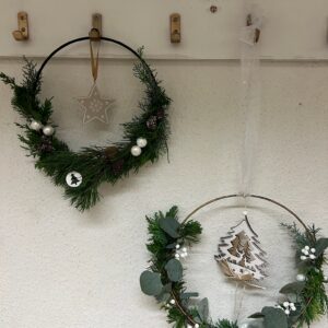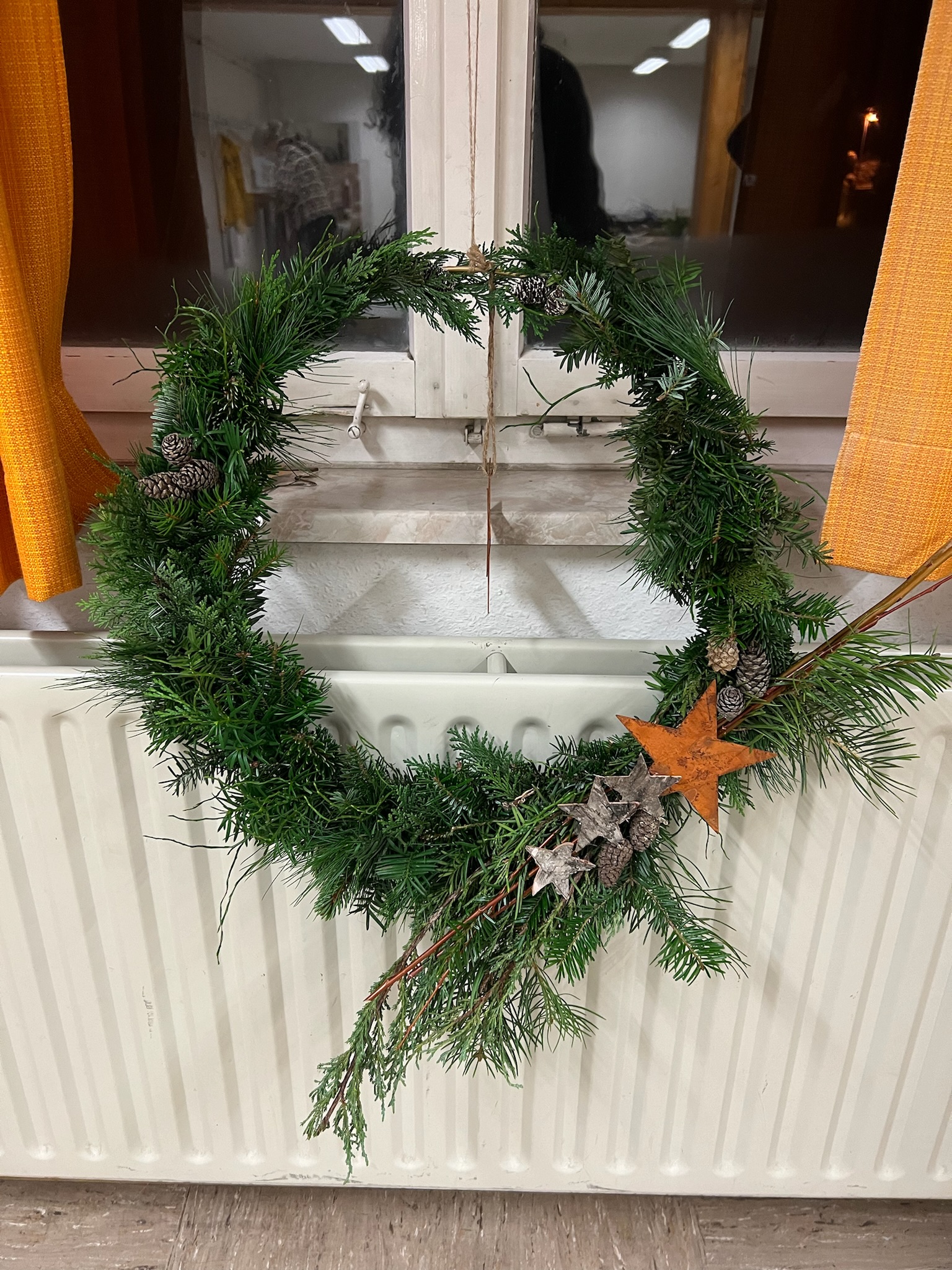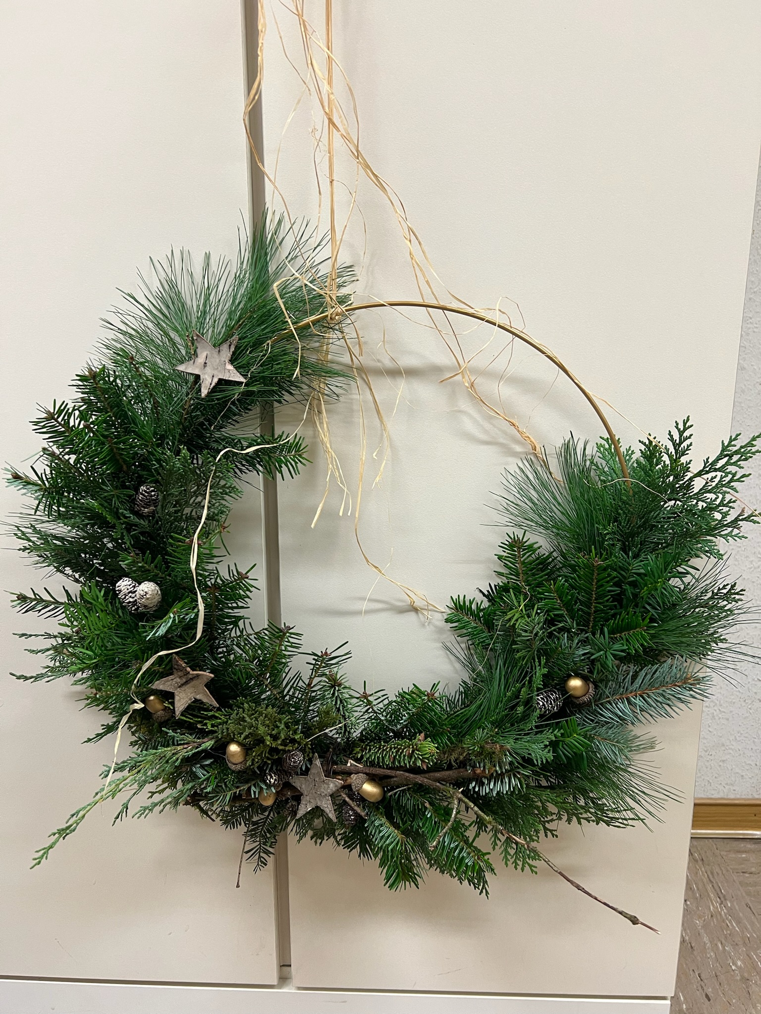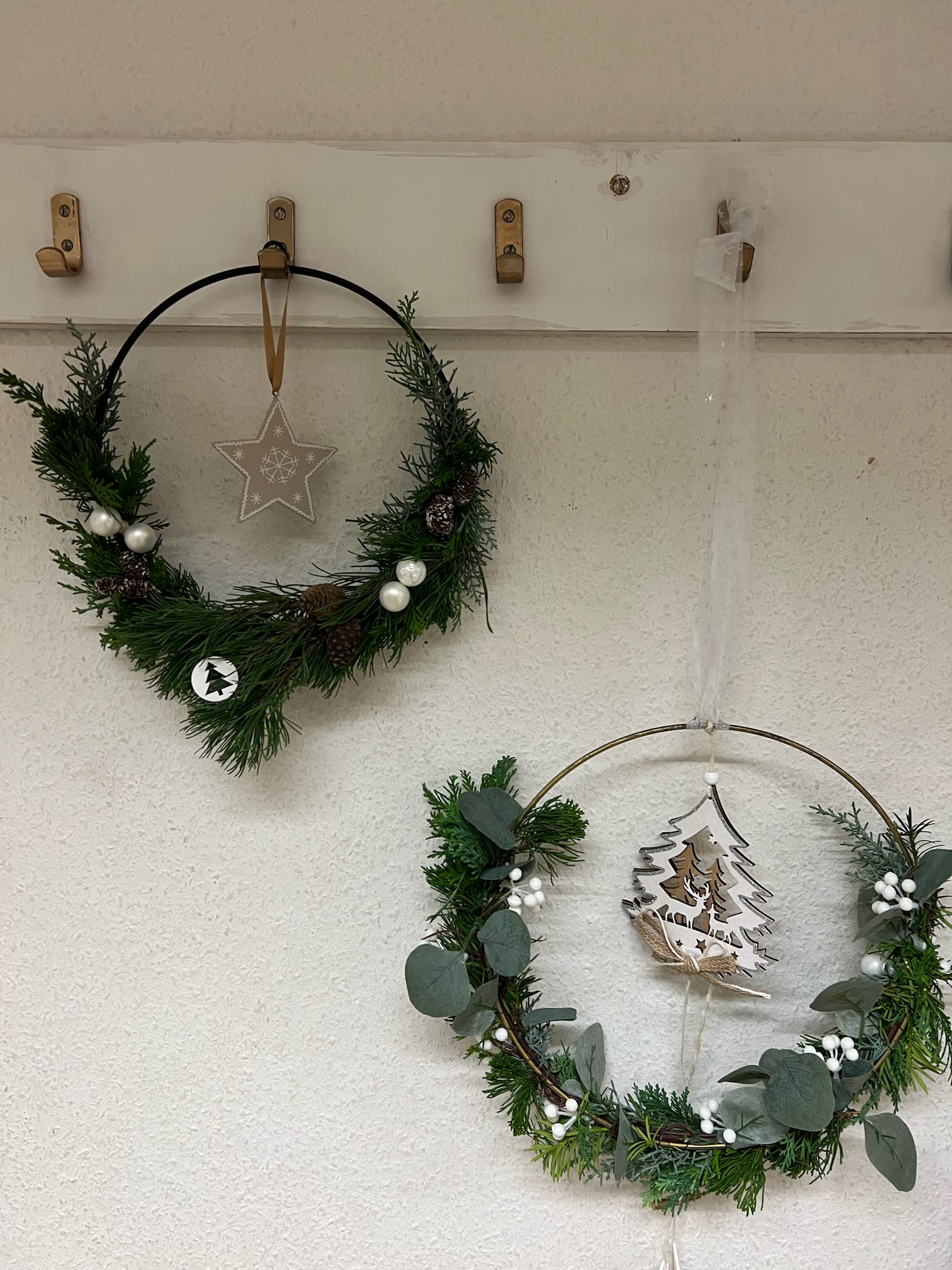 Wir haben tolle Adventskränze, Windlichter aus Rinden und Türkränze hergestellt.